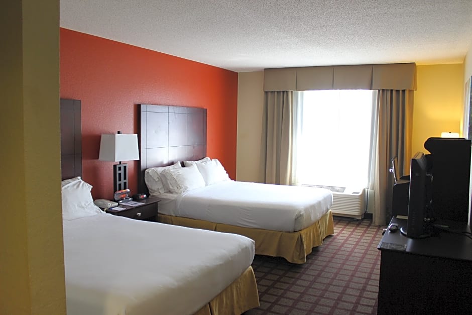 At the Holiday Inn Express Hotel & Suites Chicago-Algonquin, there are several types of rooms available. The rooms include King Rooms, Queen Rooms with Two Queen Beds, King Suites, Two-Room Queen Suites, King Executive Rooms, and Room Selected at Check-In. All rooms are non-smoking and have a room size of either 377 sqft or 398 sqft. The occupancy ranges from 2 adults and 1 child to 6 adults and 4 children, depending on the room type. The bed sizes vary between 1 King size bed, 2 Queen size beds, or 1 Queen size bed.