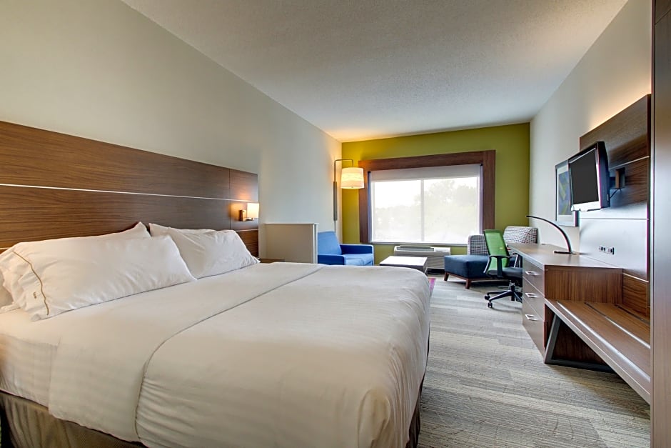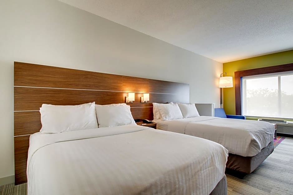The Holiday Inn Express & Suites Aurora - Naperville offers a variety of rooms including suites and doubles. The rooms range in size from 312 sqft to 474 sqft. Smoking is not allowed in any of the rooms. The bed sizes vary with options such as king size beds, queen size beds, sofa beds, and bunk beds. Occupancy ranges from 2 adults and 1 child to 6 adults and 4 children.