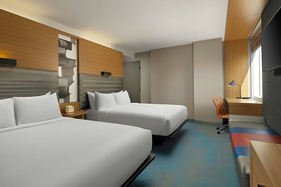 The Aloft Chicago Downtown River North offers a variety of room options. These include Corner Rooms with Two Queen Beds, Traditional King Rooms, Traditional Queen Rooms with Two Queen Beds, and Traditional Two Queen Beds. All rooms are non-smoking and can accommodate 2 adults and 1 child. The bed sizes range from Queen to King.