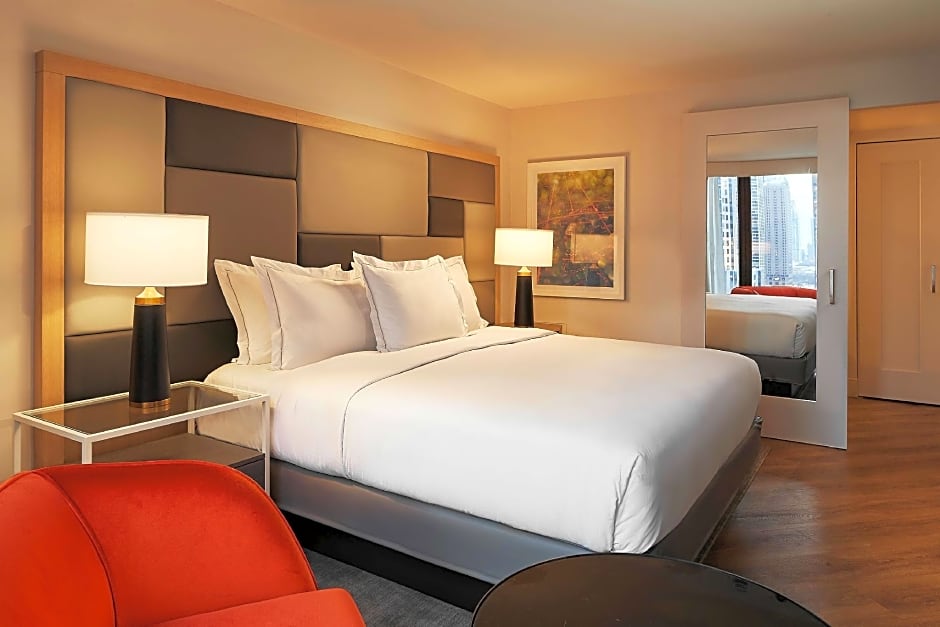Feel the rhythm of Chicago as you take a refreshing dip in the outdoor swimming pool or relax under the sun on the stylish terrace. You’ll find everything you need right here, from a top-notch fitness center to a delightful restaurant where you can savor fabulous cuisine. Need to stay connected? Enjoy complimentary WiFi while you sip on a craft cocktail at the bar. And don’t forget to check out the live music performances that add a sparkling ambiance to your stay!