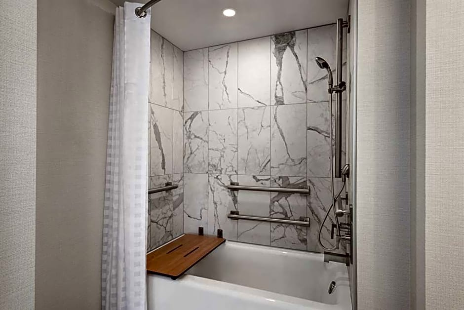 1 Bdrm Corner King Suite W/ Accessible Tub is 323 square feet and includes a king-size bed 150-183 width.