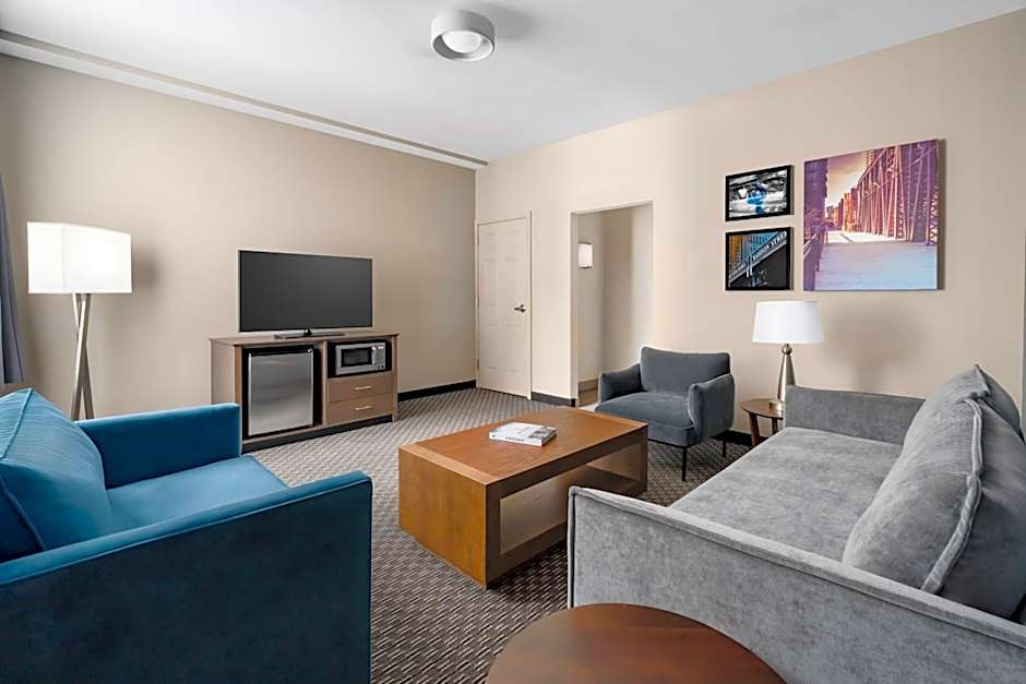 La Quinta by Wyndham Chicago Downtown offers a variety of room types including suites and double rooms. All rooms are non-smoking. The rooms range in size from 355 sqft to 527 sqft. Guests can choose from rooms with 1 Queen size bed, 2 Queen size beds, or 1 King size bed. Some rooms also include a sofa bed for additional sleeping accommodations. The rooms can accommodate 2 to 4 adults and 1 to 3 children.