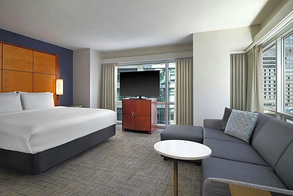 The Residence Inn by Marriott Chicago Downtown/River North offers a variety of rooms including King Studio with City View, One-Bedroom Suite with Sofa Bed, and King Studio with Sofa Bed. Smoking is not allowed in any of these rooms. The rooms can accommodate 4 adults and 3 children and have either a king-size bed or a king-size bed with a sofa bed. The sizes of the rooms are 398 sqft for the studios and 441 sqft for the suite.