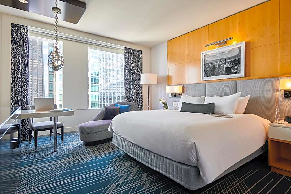On-site dining features Café des Architectes, a modern restaurant serving International cuisine, with a stylish bar for cocktails to cap off a vibrant Chicago day.