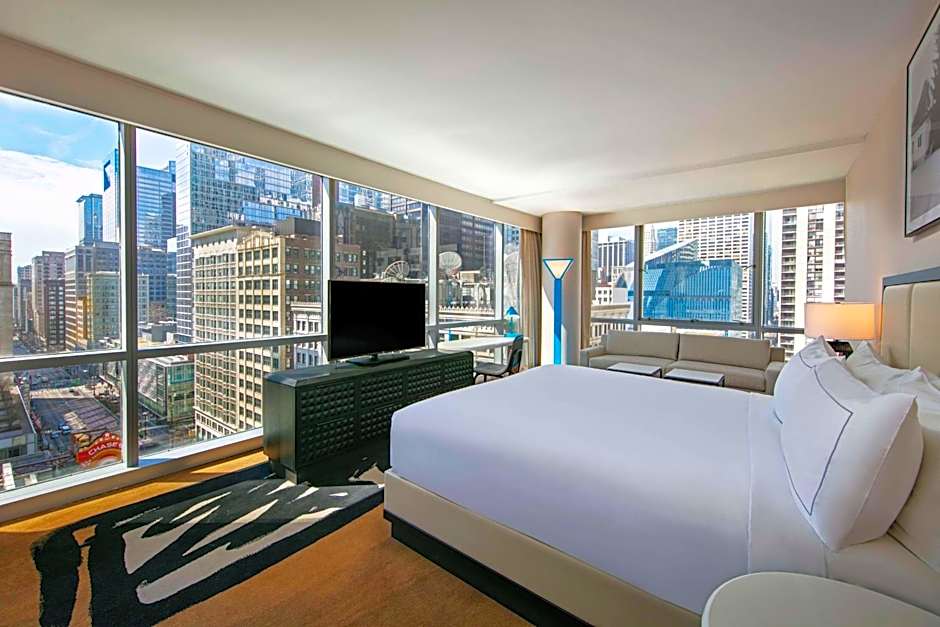 The SPA KING GUESTROOM had amazing views of the city and the Chicago Theater