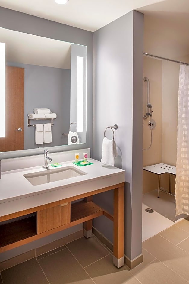 The Hyatt House East Moline/Quad Cities offers various room options including suites and double rooms. All rooms are non-smoking and have different occupancy capacities. Room sizes range from 312 to 603 sqft. Bed sizes vary with options including queen and king size beds, and some rooms also include a sofa bed. The hotel also offers accessible rooms with features such as roll-in showers and accessible tubs.