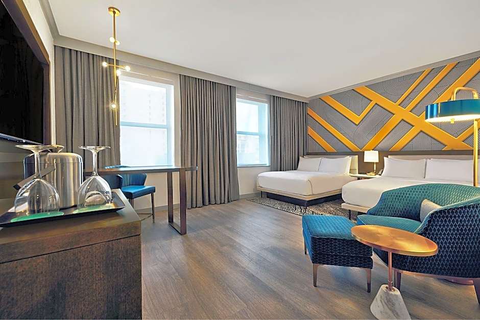 Le Méridien St. Louis Downtown offers Double Queen Rooms and King Rooms. The Double Queen Rooms have 377 sqft of space and can accommodate up to 4 adults and 3 children. They feature 2 Queen size beds and are non-smoking. The King Rooms also have 377 sqft of space and can accommodate 2 adults and 1 child with 1 King size bed. They are also non-smoking.