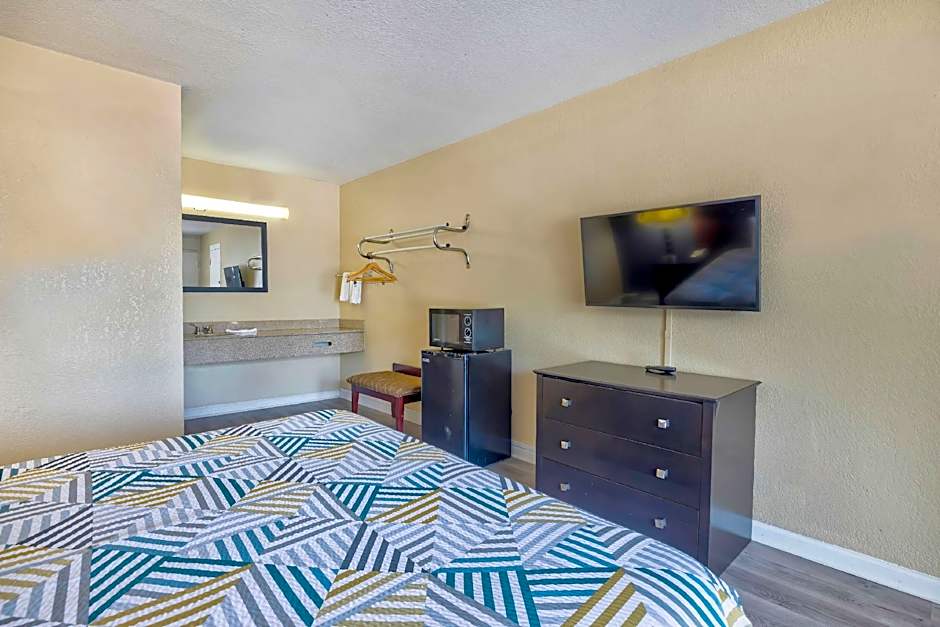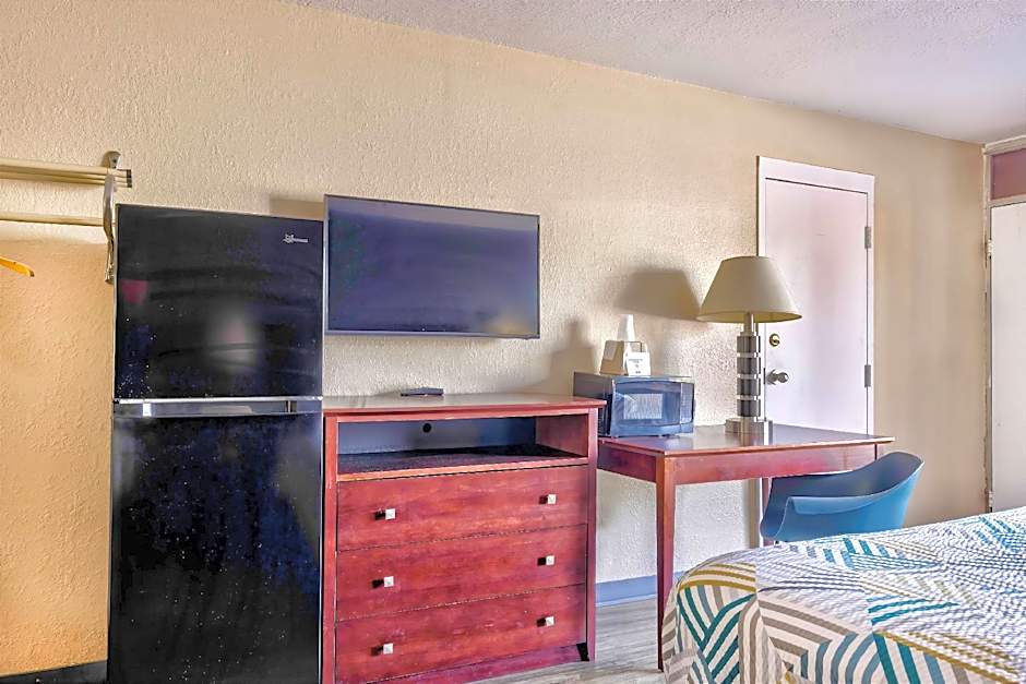 No pet fee! Easy access to rooms from parking lot. Spacious rooms. Television worked. Window coverings provided black out. Location-wise was great for travelers as close to amenities (i.e., gas and food places). Air conditioner worked great. Beds and linens were comfortable.