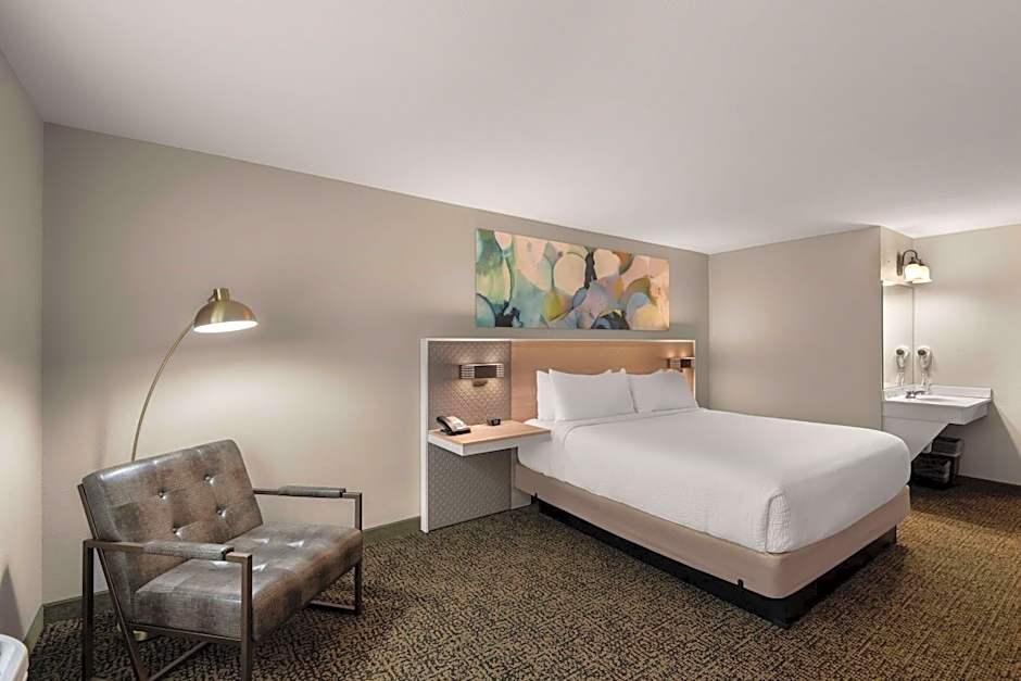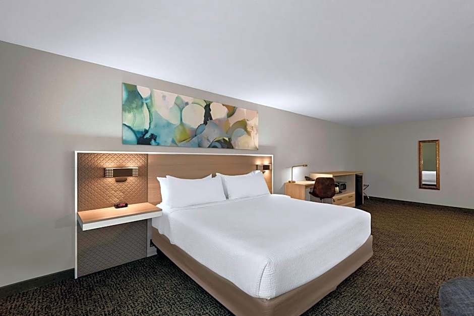 The Wyndham Garden Galena Hotel & Day Spa offers a variety of room types including King Studio Suites, King Rooms, Queen Rooms with Two Queen Beds, and King Suites with different features such as garden views, roll-in showers, fireplaces, and jetted tubs. Smoking is not allowed in any of the rooms. The occupancy ranges from 2 adults and 1 child to 4 adults and 3 children, with bed sizes varying from King to Queen.