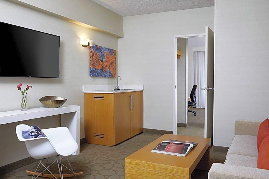 The Renaissance Chicago Glenview Suites Hotel offers 1 bedroom suites with either 2 queen beds and a sofa bed or 1 king bed and a sofa bed. These rooms are non-smoking and range in size from 441 to 517 square feet. The rooms can accommodate up to 5 adults and 4 children, and the beds available include queen and king-size beds, as well as a sofa bed.