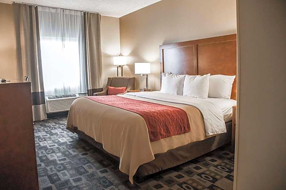 The MainStay Suites Joliet I-55 offers various types of suites. The suites are non-smoking and accommodate either 2 adults with 0 children or 4 adults with 0 children. The bed sizes range from Queen size beds to King size beds, with some suites also including a sofa bed.