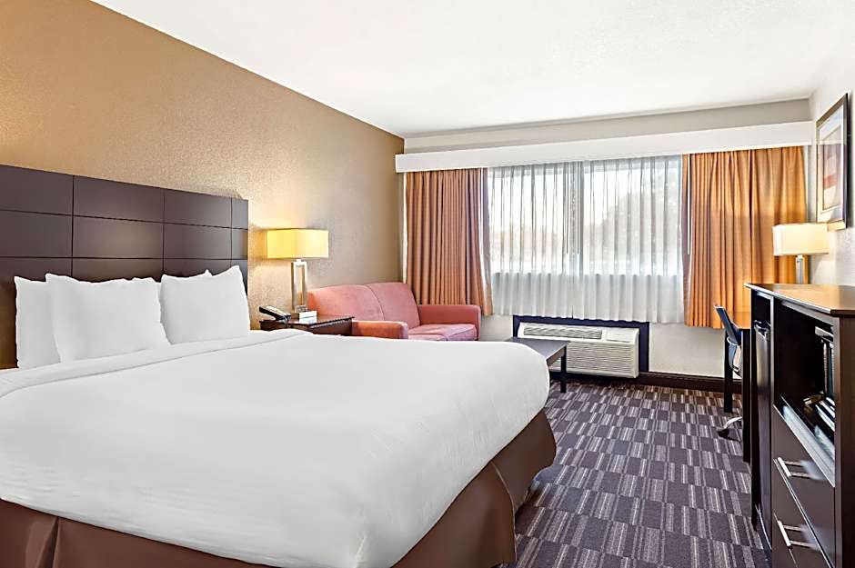 1 King Bed, Mobility Accessible, Communication Assistance, Bathtub, Non-Smoking, Continental Breakfa is 323 square feet and includes a king-size bed 150-183 width.
