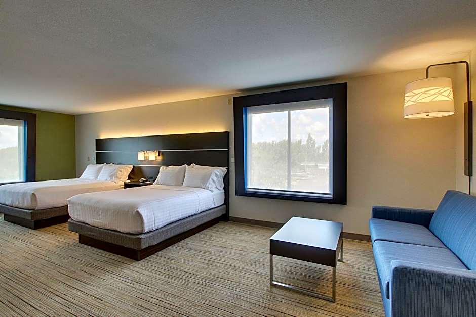 The Holiday Inn Express Hotel & Suites Morris offers a variety of room types including Deluxe King Rooms, Executive Suites, King Rooms, Queen Rooms with Two Queen Beds, Suites, Standard Rooms, Deluxe Twin Rooms, and King Rooms with Accessibility features. All rooms are non-smoking and have different occupancy capacities, ranging from 2 adults and 1 child to 6 adults and 4 children. The bed sizes vary, with options such as King size beds, Queen size beds, and sofa beds available in some rooms. The room sizes range from 323 sqft to 538 sqft.