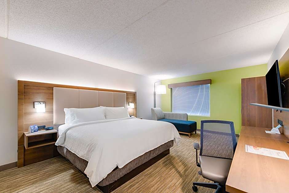 The Holiday Inn Express Naperville offers a variety of room types including suites and double rooms. All rooms are non-smoking and have a room size of 323 sqft. Occupancy ranges from 2 adults and 1 child in the King Room to 4 adults and 3 children in the One-Bedroom King Suite with Sofa Bed and Studio King Suite with Sofa Bed. Bed sizes include King beds in some rooms and either Queen or Sofa beds in others.
