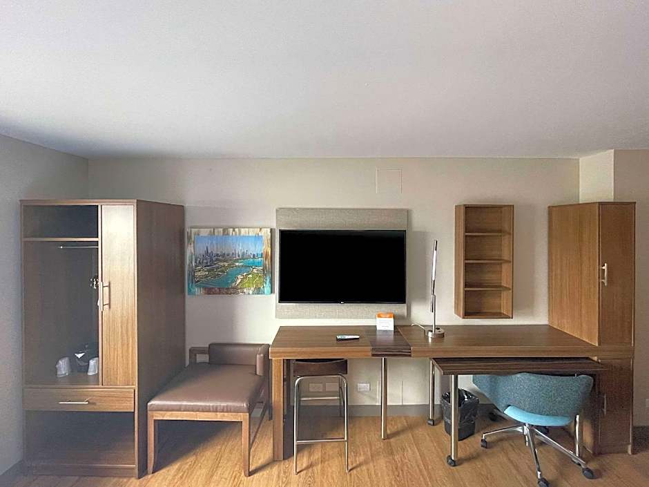 The property was clean. The staff was very flexible and helpful. The parking was free, free breakfast, and a kitchen inside the room. It was also affordable and reasonable pricing.