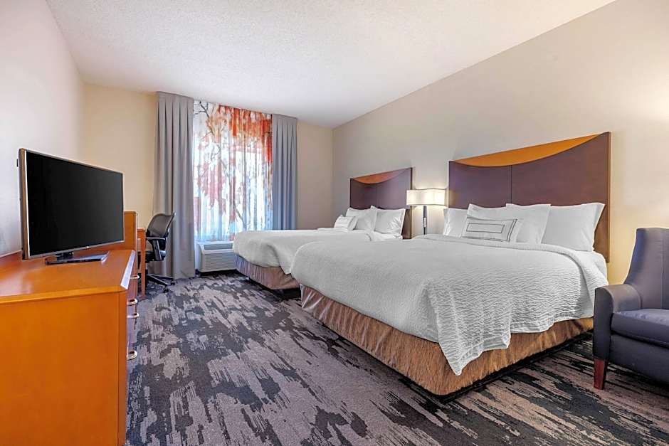 Fairfield Inn & Suites by Marriott Rockford offers a variety of room types including King Rooms, Queen Rooms with Two Queen Beds, and Junior Suites. The King Rooms are double occupancy with a King size bed, while the Queen Rooms can accommodate up to four adults with two Queen beds. The Junior Suites have two Queen beds and a sofa bed, accommodating up to five adults. Smoking is not allowed in any of the rooms.