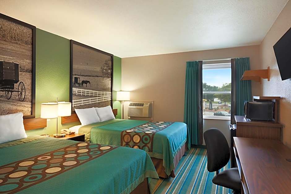 Super 8 by Wyndham Tuscola offers a variety of room types including Queen Rooms with two Queen beds, King Rooms, and Deluxe King Rooms. Smoking is allowed in the Queen Room with Two Queen Beds - Smoking and the King Room - Smoking. All other rooms are non-smoking. The room sizes are all 258 sqft and the bed sizes vary between Queen and King. The occupancy ranges from 2 adults and 1 child to 4 adults and 2 children.
