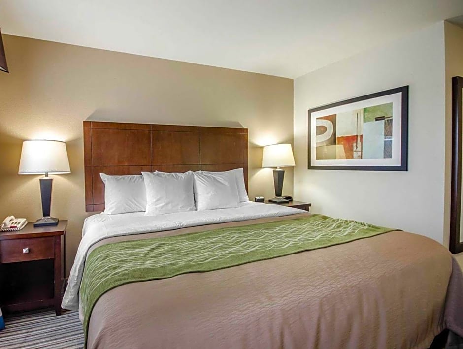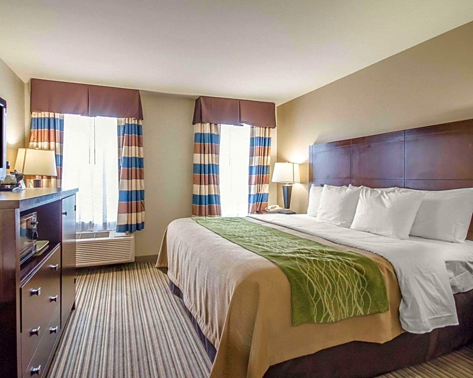 The rooms were very clean and the bed was very comfortable. They had a LOT of breakfast selections; i.e., waffles, biscuits and gravy, cereal, fresh fruit, yogurt, bagels, donuts. Plus the TV inputs are accessible and we were able to take our Roku streamer and use it in the room which was a big plus for me. The place is pet friendly if you're willing to pay $25 extra every night. Also, there is a refrigerator in the rooms.