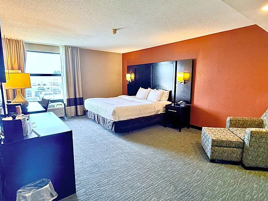 The Clarion Inn & Suites offers a variety of room types including King Rooms, King Suites, and Queen Rooms with Two Queen Beds. All the rooms are non-smoking and have a room size of 301 sqft. The King Rooms and King Suites can accommodate up to 2 adults and 1 child, while the Queen Rooms with Two Queen Beds can accommodate up to 4 adults and 2 children. The King Rooms and King Suites have 1 King size bed, while the Queen Rooms have 2 Queen size beds.
