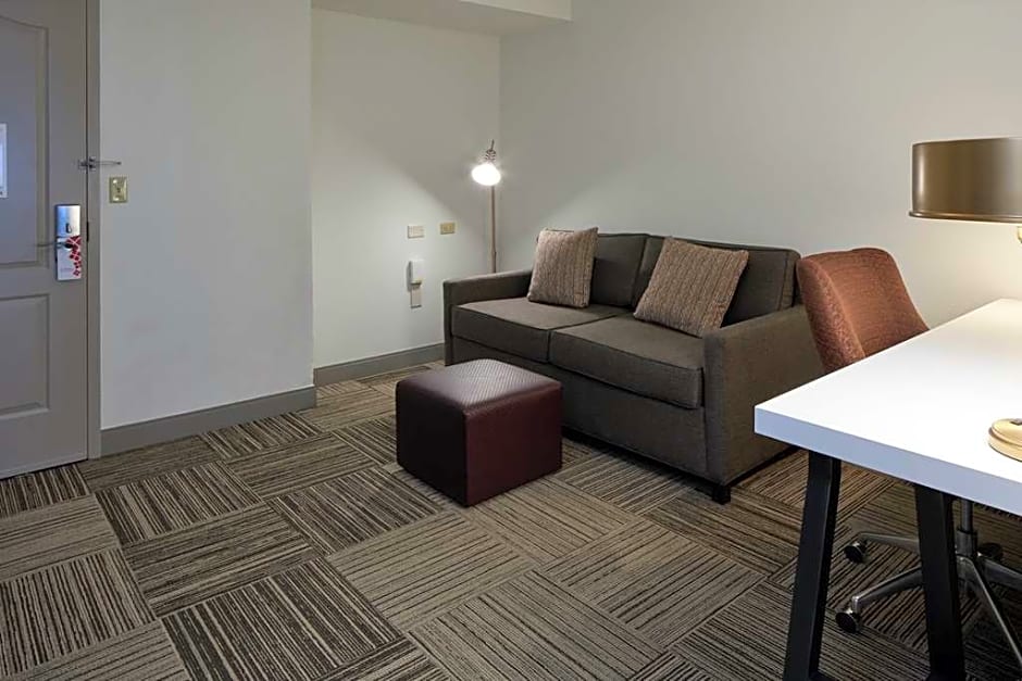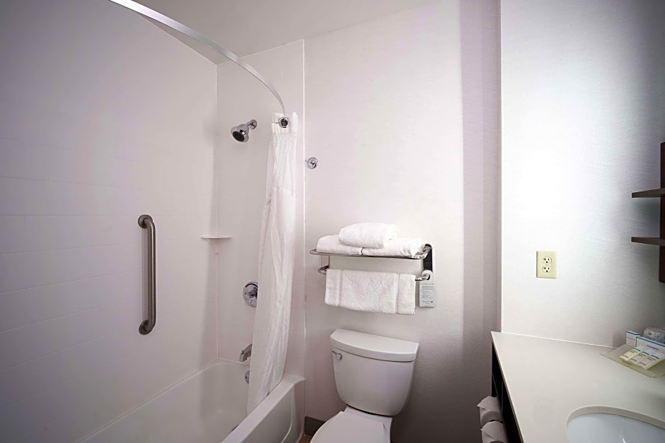Accessible, living area, sofa bed, refrigerator, microwave, complimentary WiFi, work area Select this Junior Suite for mobility accessible features including an accessible tub with grab bars and attached seating, lowered vanity in the bathroom and lowered shelf in the closet. The suite also includes a separate living area with a sofa bed, a coffee table and an HDTV. Enjoy a restful night's sleep in the bedroom that includes our Garden Sleep System bed providing the perfect balance between comfort and support. Keep in touch with complimentary WiFi and work at the spacious work desk with an ergonomic chair. Other amenities include a microwave, a refrigerator and a Keurig® coffee/tea maker to help you feel at home. Any corresponding photo may not reflect the specific accessible room type or room feature.