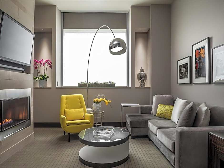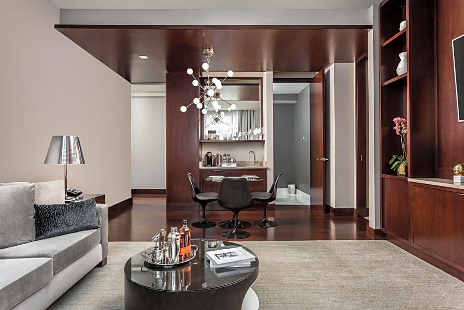 Exclusive floor, unique 900 sq. ft. art-centric suite. Each of the four uniquely different suites provides guests a true luxury experience with exquisitely thoughtful details and amenities. Spacious living areas transition guests effortlessly from work to play with custom butler bar, remote-controlled lighting and privacy settings, and superior entertainment options including surround sound, 50-inch LED panel HDTV and personal device streaming. At the heart of each suite is a work that captures the spirit of an artistic movement. Pieces by Salvador Dali, Pablo Picasso, William John Kennedy and more adorn the suite walls and immerse guests in an atmosphere of carefully curated luxury. Other amenities include a master bath with oversized shower and floating vanity with inset HDTV and backlit LED mirror, and private lobby entrance.