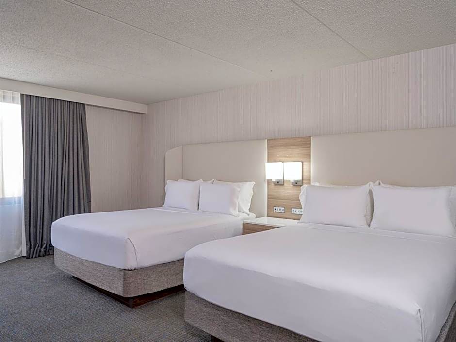 The Crowne Plaza Indianapolis-Airport offers various types of rooms. The rooms include Double Rooms with bath tub and Twin Rooms with roll-in showers, both of which are disability accessible and non-smoking. There are also Deluxe King Rooms, Queen Rooms with two Queen beds, King Suites, King Rooms with a sofa bed, Two-Bedroom King Suites, King Rooms with mobility access, and Standard Single Rooms. The rooms have various bed sizes, including double beds, King beds, Queen beds, and sofa beds. The occupancy of the rooms ranges from 2 adults with 1 child to 6 adults with 4 children. All rooms are non-smoking.
