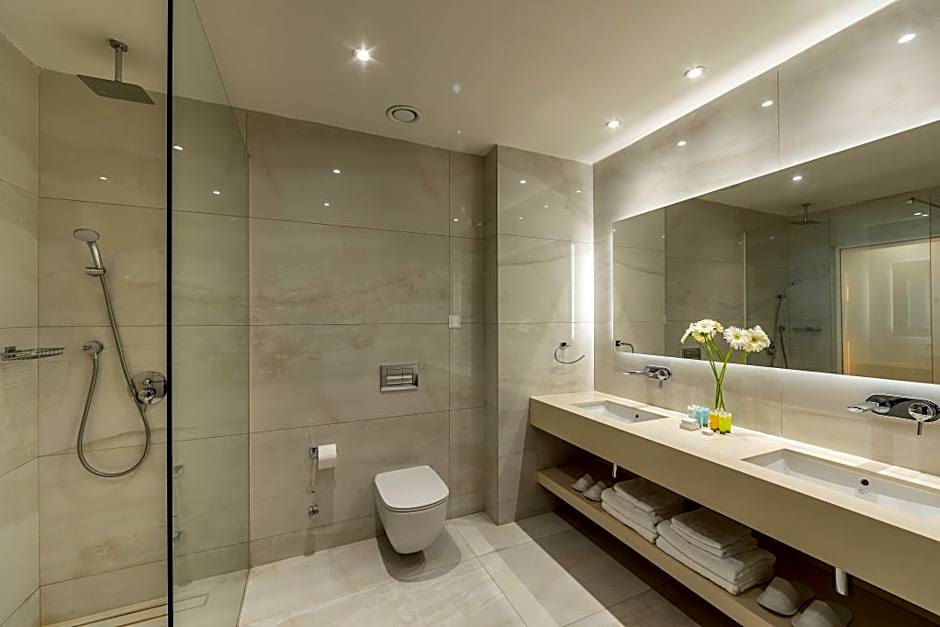 The hotel offers a variety of rooms including Deluxe Studios, One Bedroom Suites, Queen Studios, and Quadruple rooms. All rooms are non-smoking and have a size of 301 sqft. Occupancy ranges from 2 adults and 1 child to 6 adults and 4 children depending on the room type. Bed sizes include Double, Queen, and King beds, and some rooms also feature sofa beds.