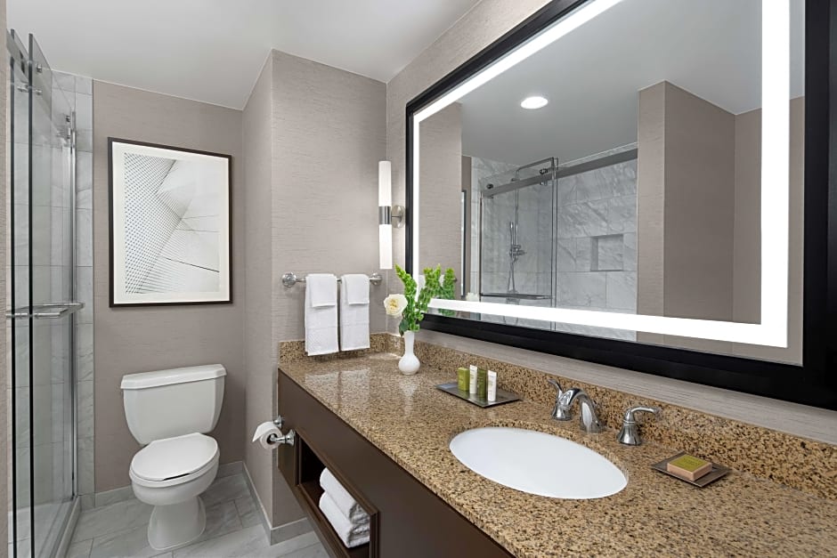 On-site dining brings a pairing of flavors to suit any mood. 120 West Bar & Grill offers American grill favorites in a family-friendly, modern setting, while McCormick and Schmicks serves seafood for a more refined dinner option. After a day of exploring downtown, the on-site bar provides a relaxed spot to unwind, and room service adds convenient late-night choices.