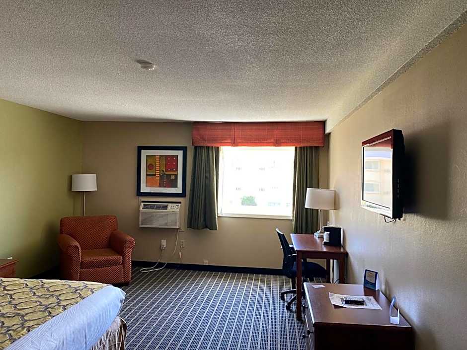 Free WiFi, free continental breakfast, bathtub/shower combination, bathtub grab bars, adjustable hand-held shower wand, bathroom is wheelchair accessible, portable bathtub seat, raised toilet seat with grab bars, bedroom is wheelchair accessible, closet rods at wheelchair height, mini-refrigerator, microwave, air conditioning, coffee/tea maker, hair dryer, HDTV, bathroom amenities, alarm clock, desk, iron, ironing board