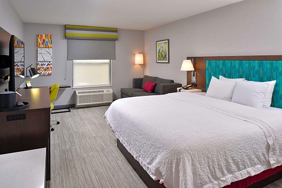 This mobility and hearing accessible, non-smoking room features one king-sized bed, and an accessible bath tub. The room also has a visual alarm and notification devices for the doorbell or door knock and incoming phone calls. The room features comfortable soft seating, a 32" HDTV, and an easy to operate alarm clock/radio. The free high-speed internet access will help you stay connected while on the road. If you prefer not to work at the desk, you can use the convenient lapdesk instead. You'll also enjoy the convenience of having a coffee maker with tea service and iron/ironing board in your room. Any corresponding photo may not reflect the specific accessible room type or room feature.