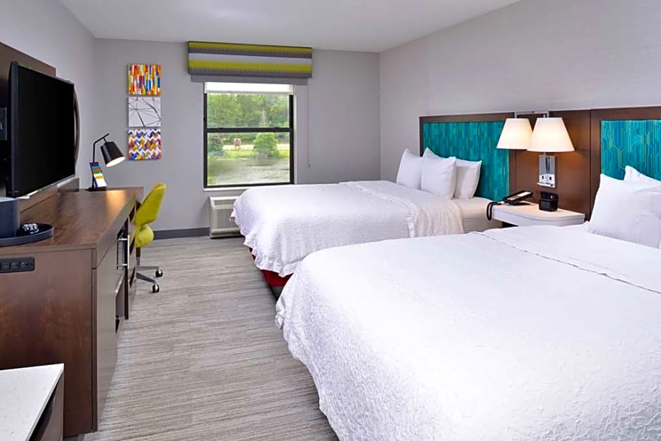 32-inch LCD HDTV, work desk, coffeemaker, free WiFi, trundle bed This spacious family room features two clean and fresh Hampton beds®, a trundle bed for the children and an entertaining 32-inch LCD TV with HD channels. Catch up on business at the expansive desk and stay connected with free WiFi. Re-energize in the bathroom which boasts soft towels and a shower with a curved shower rod for added space and light. The room also includes a coffeemaker - perfect for making that first delicious coffee of the day.
