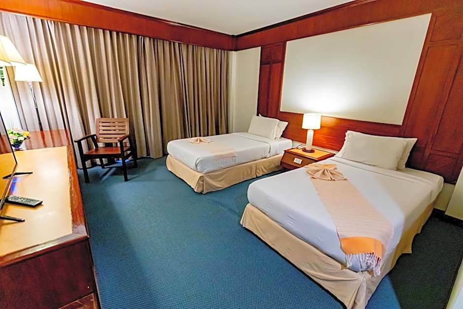 "Indulge in our spacious Queen Room with Two Queen Beds, equipped with a private bathroom, microwave, and flat-screen TV. Accommodating 4 adults and 3 children, it provides a comfortable and enjoyable stay for families or groups."