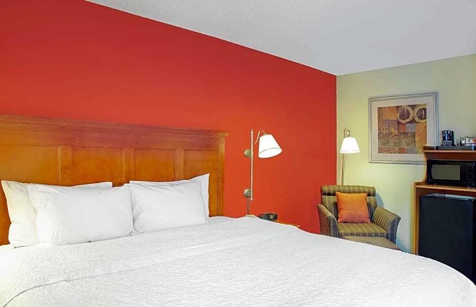 The Hampton Inn Merrillville offers a variety of room types, including King Study with Sofa Bed, Queen Room, King Room (Disability Access), King Room with Sofa Bed (Disability Access), and King Room. All rooms are non-smoking and have a room size of 301 sqft. The occupancy ranges from 2 adults with 1 child to 4 adults with 3 children, depending on the room type. The bed sizes vary between 1 King size bed, 2 Queen size beds, and 1 Sofa bed.