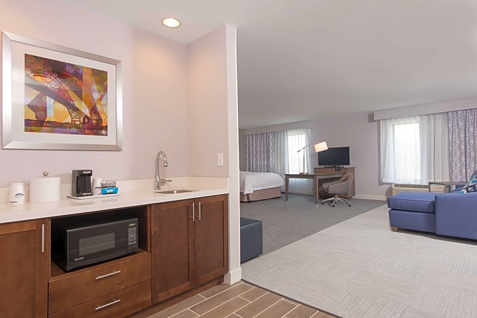 This suite features a seating area with a sofa bed, along with a microwave, small refrigerator and wet bar.