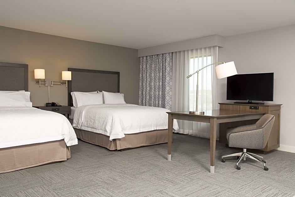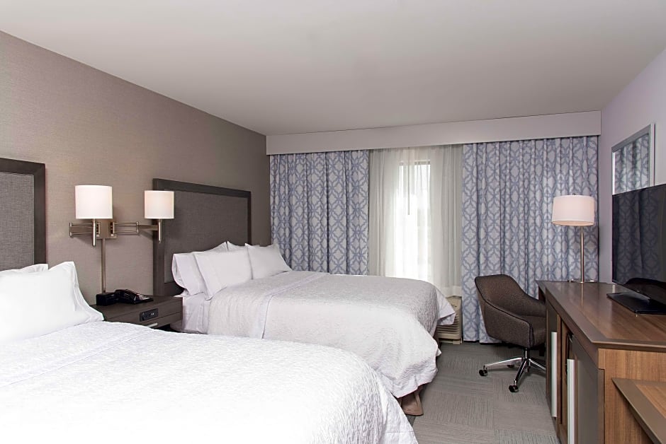 The Hampton Inn and Suites Michigan City offers a variety of room types. These include quadruple rooms with a king size bed and sofa bed, suites with a king size bed, double rooms with a king size bed, quadruple rooms with two queen beds, and hearing accessible rooms with either a king size bed or two queen beds. Smoking is not allowed in any of the rooms. The rooms can accommodate between 2 and 4 adults and have either a king or queen size bed.
