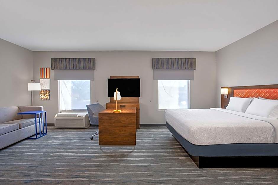 37-inch LCD HDTV, work desk, sofa bed, coffeemaker, free WiFi, whirlpool tub Enjoy a relaxing night in this spacious studio suite with a clean and fresh Hampton bed®. Watch a movie on the 37-inch LCD TV with HD channels or unwind in the studio's whirlpool tub. This suite contains a large work desk, comfy chair and free WiFi to help you keep on top of work. The bathroom features plush towels and a shower with a curved shower rod for added space and light. Start the day off right with a tasty coffee from the coffeemaker.