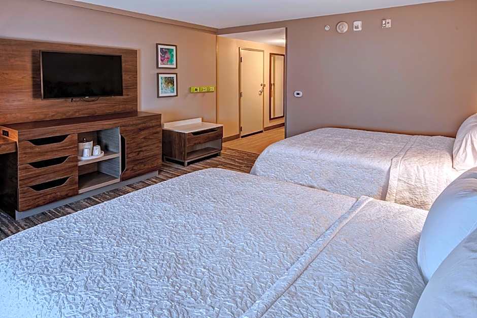 The Hampton Inn New Albany Louisville West offers a variety of room types, including Queen Rooms with Two Queen Beds, King Rooms, and King Studio Suites. All rooms are non-smoking and have a room size of 291 sqft. The Queen Rooms with Two Queen Beds and the King Rooms can accommodate up to 2 adults and 1 child, while the King Studio Suite can accommodate up to 4 adults and 3 children. The beds available range from Queen size beds to King size beds, with the King Studio Suite also offering a sofa bed.