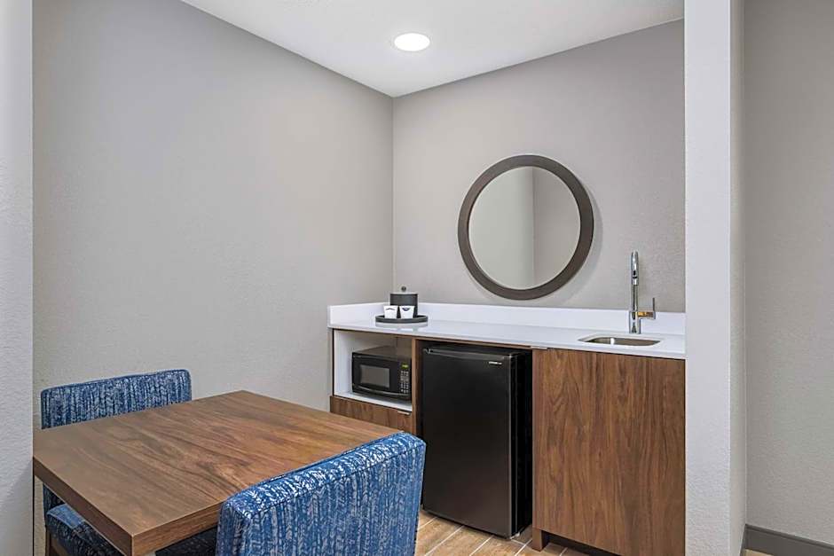 Whirlpool, desk, HDTV, free WiFi Relax in this king room with a clean and fresh Hampton bed® and whirlpool tub. Watch movies on the HDTV or catch up with work at the large desk with ergonomic chair. Surf the web with free WiFi. Refresh your senses in the bathroom, complete with shower and plush towels. Enjoy the convenience of having a coffeemaker in the room.