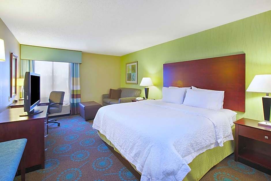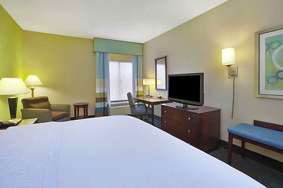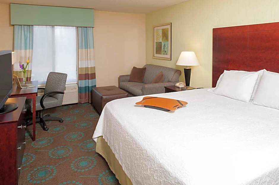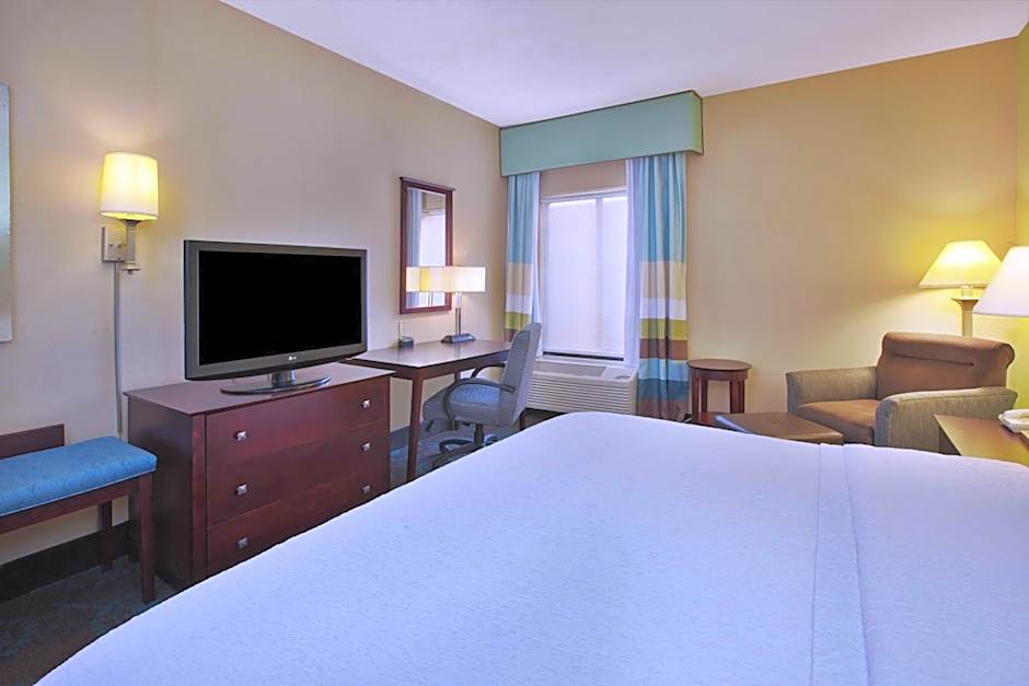 This spacious suite features a small seating area with sofa bed, chair, and ottoman. A microwave and small refrigerator are also included.