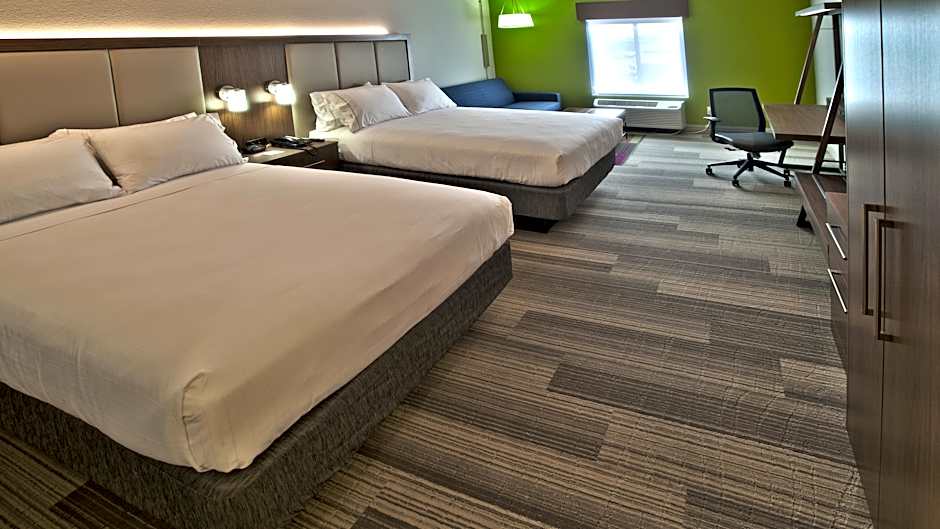 The Holiday Inn Express & Suites Evansville North offers a variety of rooms including Queen Rooms with Two Queen Beds, Queen Suites with Two Queen Beds, King Rooms, King Suites, and Standard Double or Twin Rooms. These rooms can accommodate varying numbers of adults and children, with the Queen Rooms and Suites accommodating up to 6 adults and 4 children. Smoking is not allowed in any of the rooms. The beds in the rooms range from Queen size to King size.