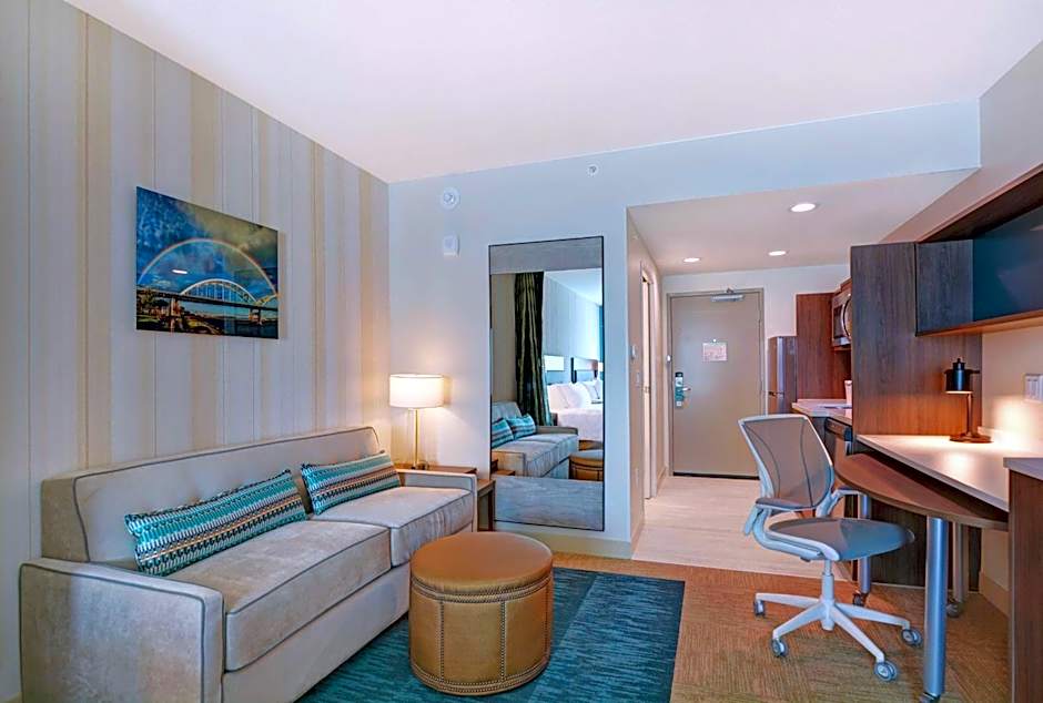 The hotel offers One-Bedroom King Suites and King Studio Suites, both non-smoking, with a room size of 301 sqft. These rooms accommodate 4 adults and 3 children, with 1 King size bed. The hotel also offers Queen Studio rooms with Two Queen Beds, both non-smoking and hearing accessible, non-smoking, or mobility accessible. These rooms have a room size of 301 sqft and accommodate 6 adults and 4 children, with 2 Queen size beds.