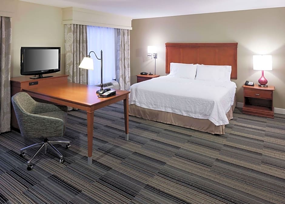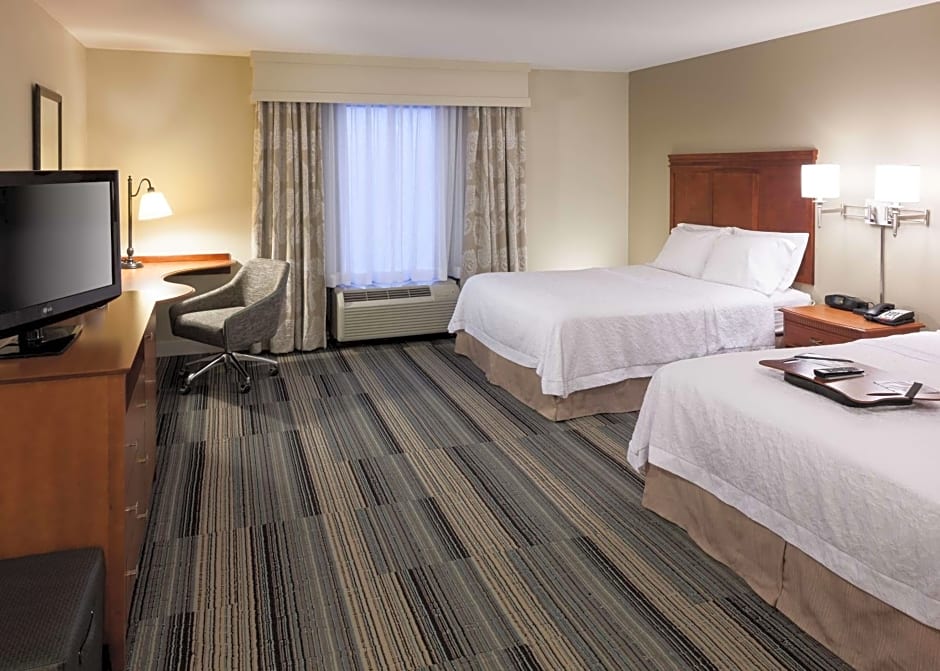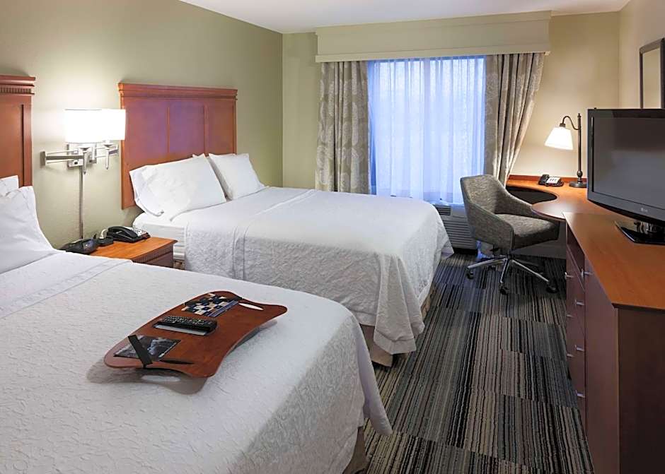 When you stay at the Hampton Inn & Suites, you'll enjoy a range of fantastic amenities. Start your day off right with a delicious complimentary breakfast, before taking a dip in the indoor swimming pool or relaxing in the hot tub. Stay connected with free Wi-Fi throughout the hotel, and take advantage of the 24-hour front desk and business center for all your needs. The hotel also offers free parking, making it easy to explore the surrounding area at your leisure.