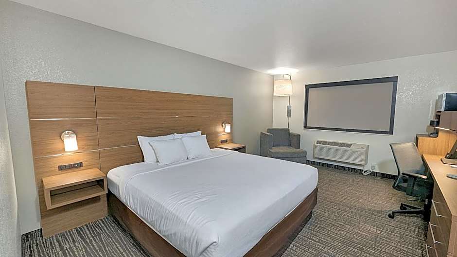 Very conveniently located toward the edge of town. Easy to find. We were very impressed with the quality of our stay. Some of the fixtures and what not are outdated but very clean. Only one defect we found was some peeling drywall above the shower. The pool was well lit, clean and open late which was excellent. Breakfast was good with a nice variety of options. I am gluten free and was able to have sausage and oatmeal which was a treat. My daughter loved the touch less pancake maker. And we were able to take our dog!