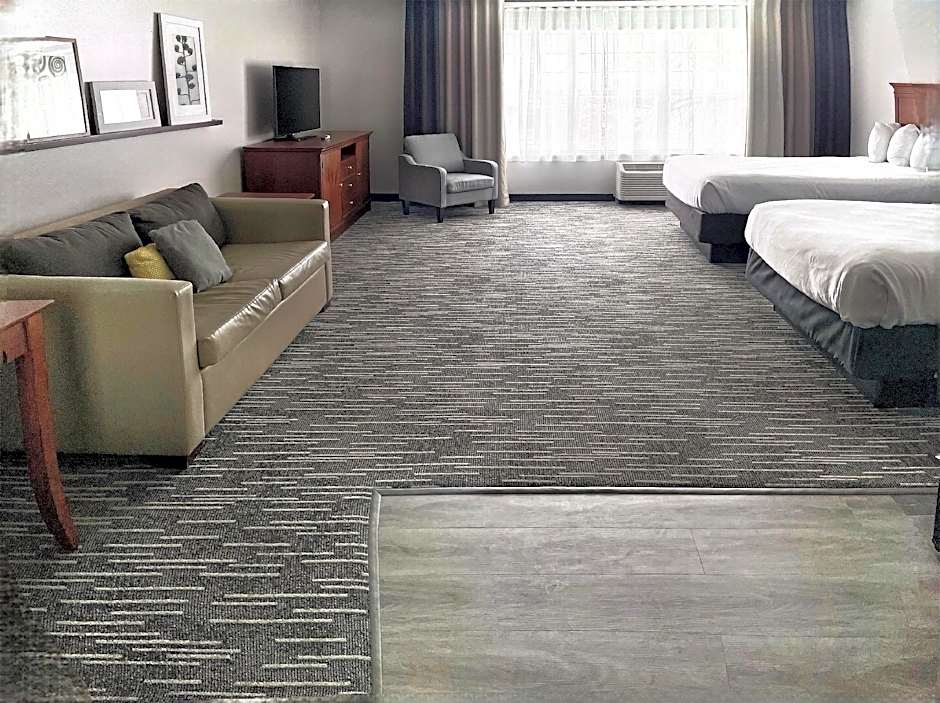 Suite-2 Queen Beds Non-Smoking Sofabed For One Pax Microwave And Mini-Refrigerator Full Breakfast is 312 square feet and includes 2 queen-size beds 150-154 width plus a sofa bed.