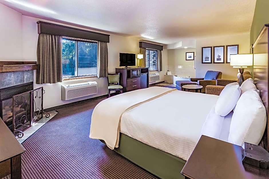 The lodge-style hotel is cozy and gives off a warm and inviting aesthetic. The lobby is comfortable and spacious. The pool, spa, and sauna area was great for the whole family. The staff were friendly and helpful and the whole facility was spotless.