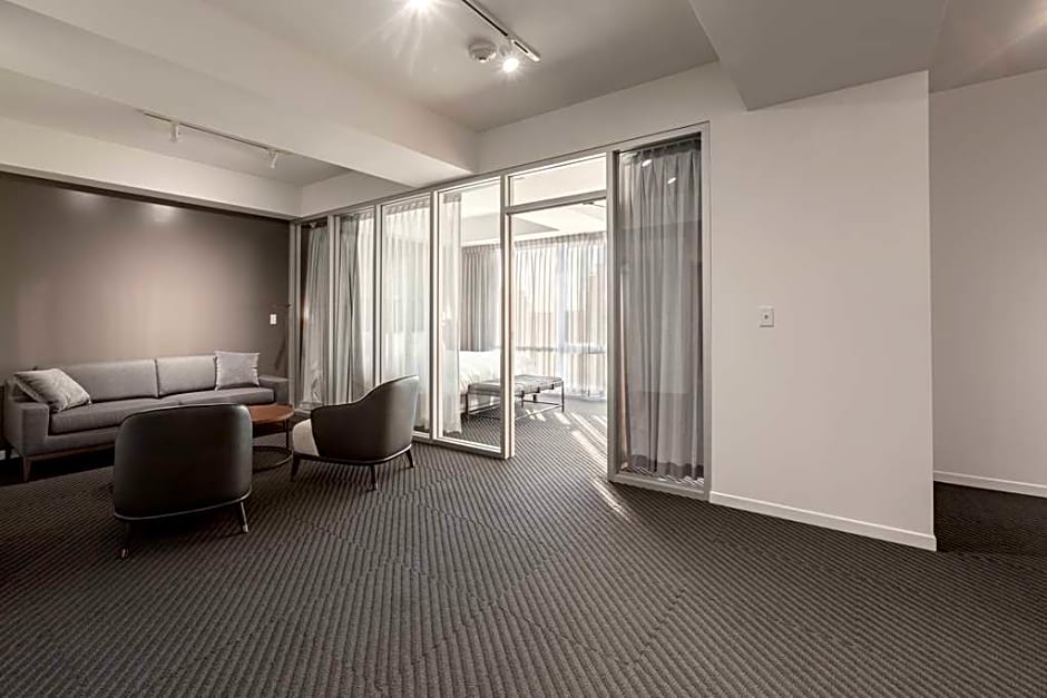Rooms were exceptional. Loved the kitchen area and its high end appliances. The kitchen was fully stocked with dishes, glasses, etc. Keurig also an added plus. Ultra clean, modern and a great location. The amenities are great. Spare Me bowling was an unexpected surprisingly great bar ! Great craft cocktails. Adam the bartender was awesome ! Lovely coffee bar as well. There is also an indépendant film theatre! I highly recommend this hotel. Great Value! Parking garage on site! You will love your stay!