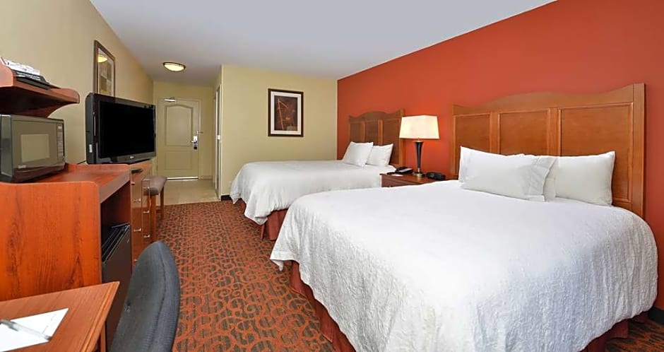 Hearing and Mobile Accessible with Tub, Microwave, Mini-Fridge, 32-inch HDTV Relax in this cozy room with 2 clean and fresh Queen Hampton beds® with hearing and mobile accessible with tub features. Store your favorite snacks in the mini-fridge and reheat later with the microwave. Watch your favorite TV show on the 32-inch HDTV. Catch up with work from the office using our free WiFi. In the bathroom you'll enjoy our fluffly towels, a WaterPik® showerhead and curved shower rod for added space and light. Enjoy a hot drink from your in-room tea/coffee maker.
