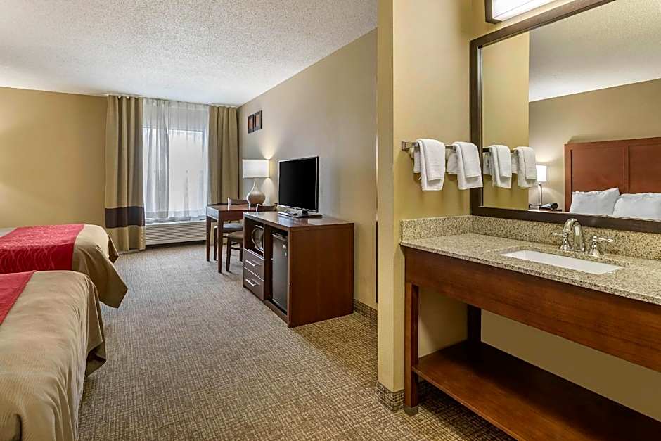 The Comfort Inn Walcott near Davenport offers a variety of room types, including rooms with 2 queen beds, 1 king bed, and 1 queen bed, as well as accessible options. Smoking is not allowed in any of the rooms. Bed sizes range from queen to king, and room sizes vary from 291 sqft for a King Room to 312 sqft for a Queen Room with Two Queen Beds. Occupancy ranges from 2 adults and 1 child to 4 adults and 3 children.