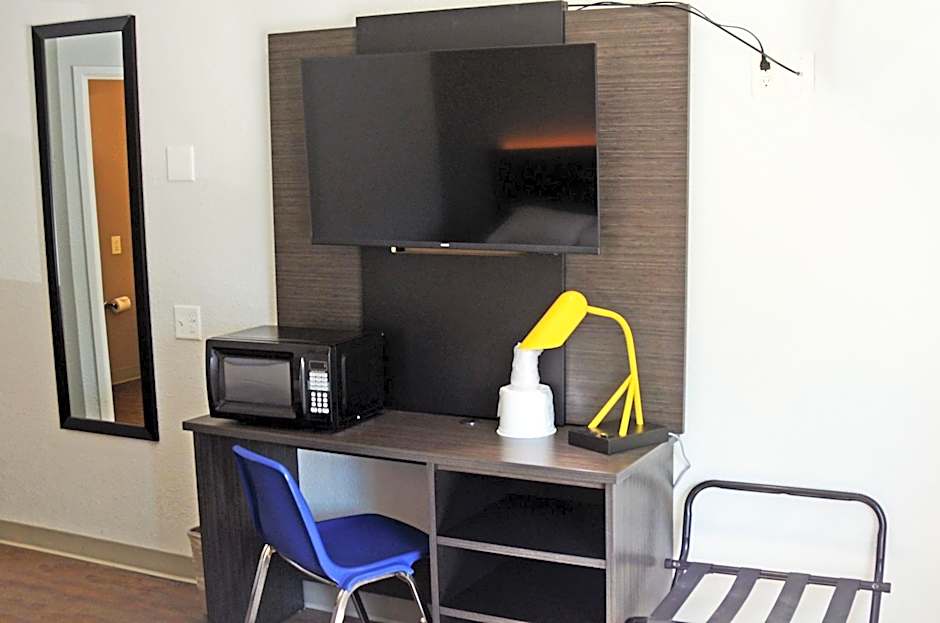 - Room is roomy. - Large desk to use as table. - Room seems clean. - Motel has elevator to take my upstairs.