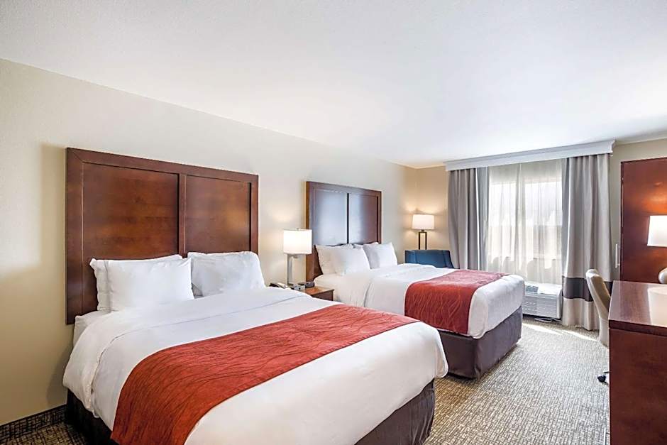 The Comfort Inn Bonner Springs Kansas City offers a variety of room types including King Rooms, Queen Rooms with Two Queen Beds, King Suites, and Accessible Queen Rooms with Two Queen Beds. All rooms are non-smoking. The King Rooms accommodate 2 adults and 1 child, while the Queen Rooms with Two Queen Beds and the Accessible Queen Rooms with Two Queen Beds can accommodate 4 adults and 3 children. The King Suite also accommodates 2 adults and 1 child. Bed sizes include King and Queen beds.